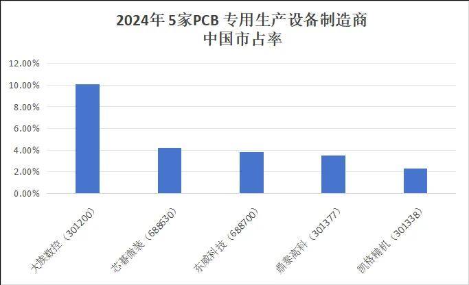 灼识征询数据显示,2024 年富家数控正在国内 PCB 公用设备市场市占率为 10。1%,全球市占率为 6。5%,均位列行业第一。虽然全体规模不大,但正在分离的设备市场中,这一份额已具备较着的龙头特征。
