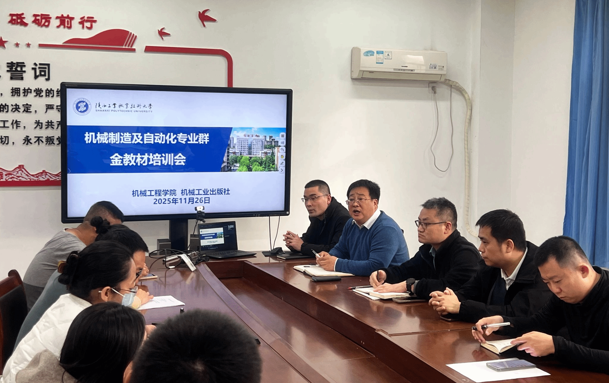 为持续推进机械制制及从动化国度级专业群金教材扶植,破材编写中的痛点难点,提拔教材取财产需求、人才培育方针的适配度,11月26日,机械工程学院院长赵明威、讲授办从任吴玉文及专业群全体教材编写教师参会,会议由赵明威院长掌管。机械工业出书社资深专家王英杰从任受邀从讲。会议按以下几个环节进行: