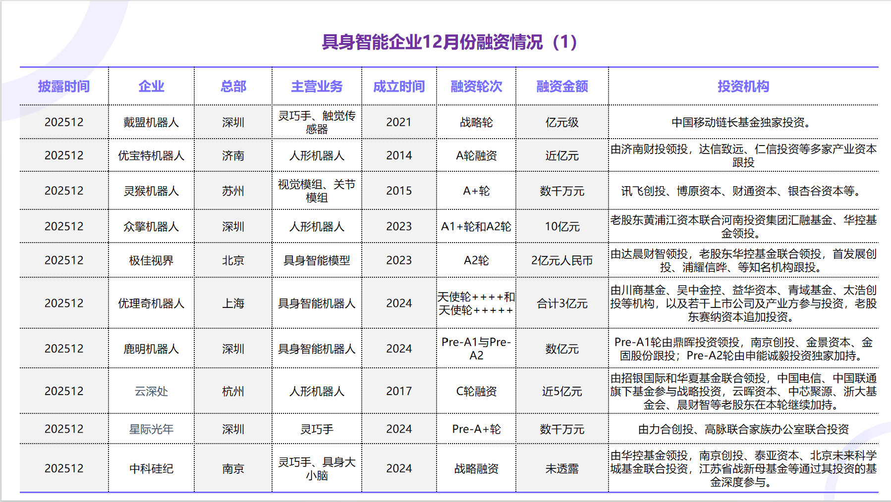 2)Pre-IPO轮:12月25日,据相关报道,云深处科技完成数亿元Pre-IPO轮融资,融资由国度人工智能财产基金领投,某互联网大厂跟投。12月23日,云深处科技正式启动上市,成为继宇树科技之后又一家冲刺“A股国产人形机械人第一股”的草创企业。