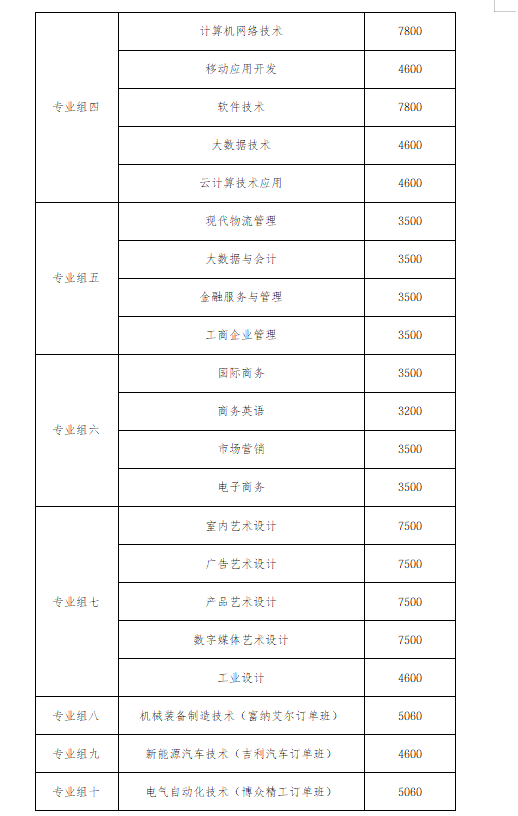 专业组四为消息手艺类专业,包含计较机收集手艺、挪动使用开辟、软件手艺、大数据手艺、云计较手艺使用5个专业,其入彀算机收集手艺、软件手艺膏火为7800元/年,其余3个专业膏火为4600元/年,适配数字经济成长需求。